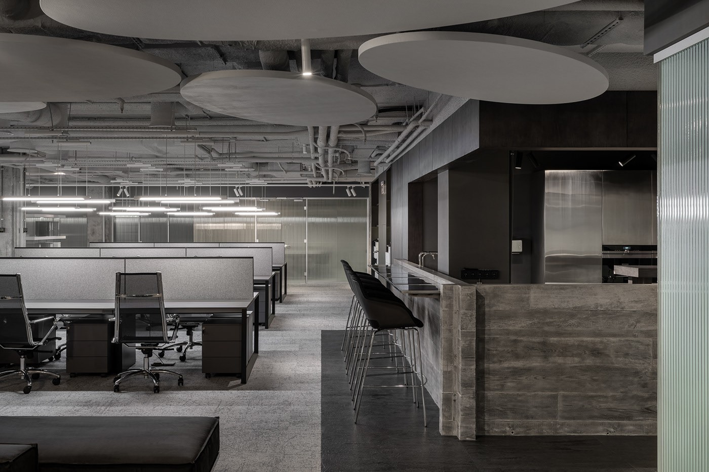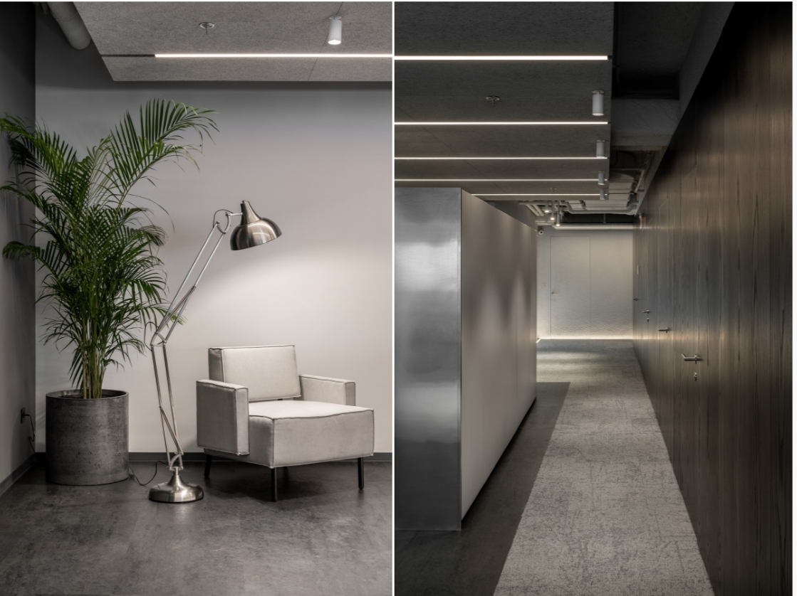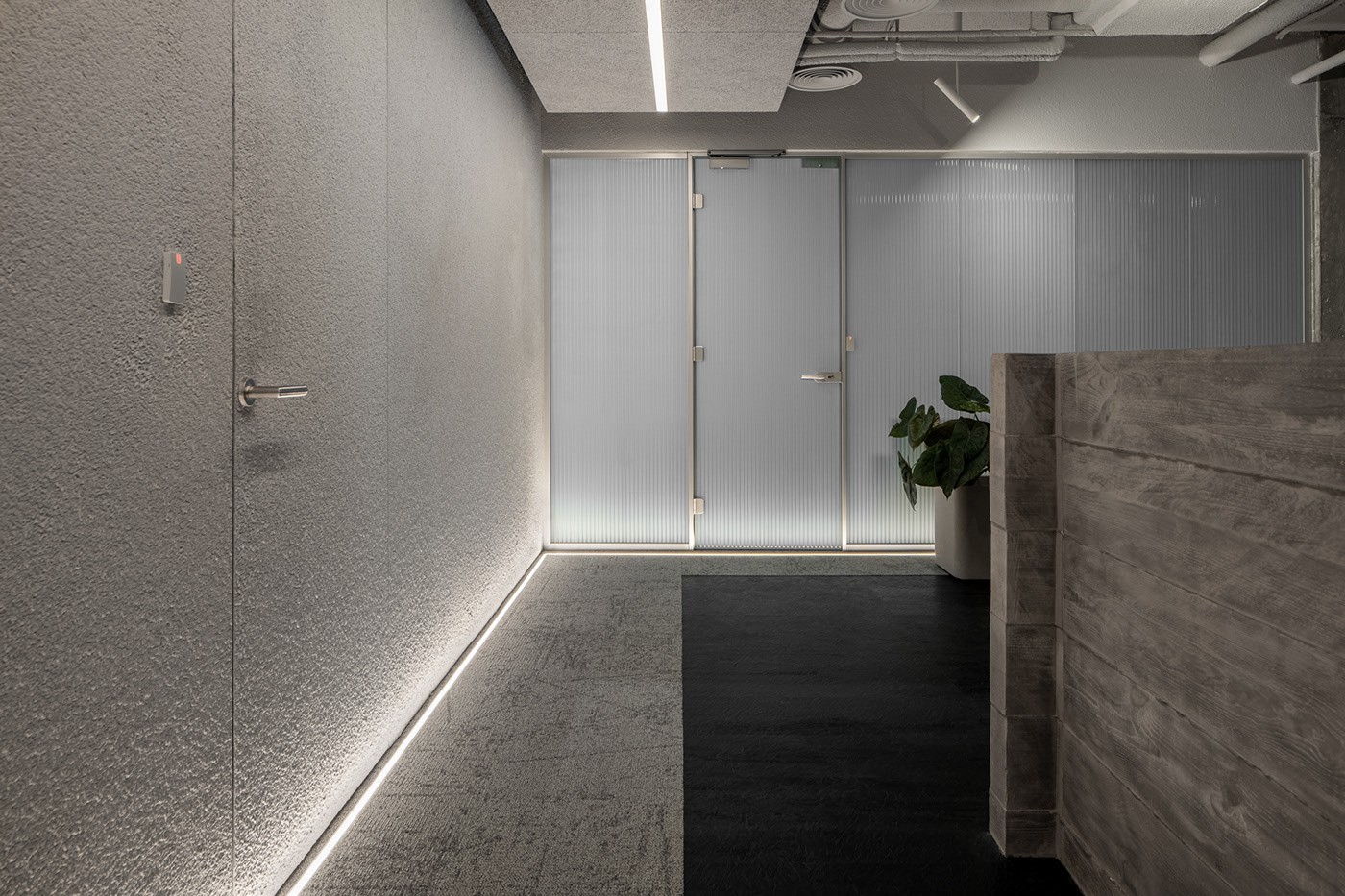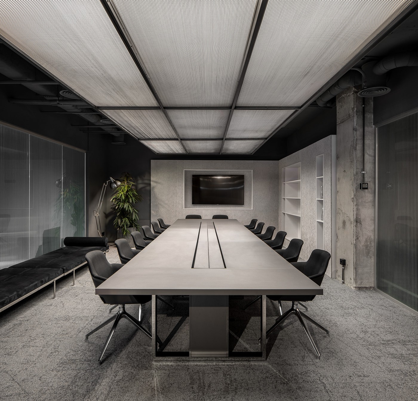 在分析了公司以及團隊的平均年齡(40 歲以上)和他們的需求之后,我們決定專注于簡單和極簡主義。我們的團隊設(shè)計了一個連貫的單色空間,沒有多余的裝飾和視覺噪音,并采用拋光金屬結(jié)構(gòu)和其他獨特元素加以增強。材料以其真實狀態(tài)實施:混凝土——堅固且有紋理,金屬——粗糙和裸露,木材——始終是真實的,從不模仿。