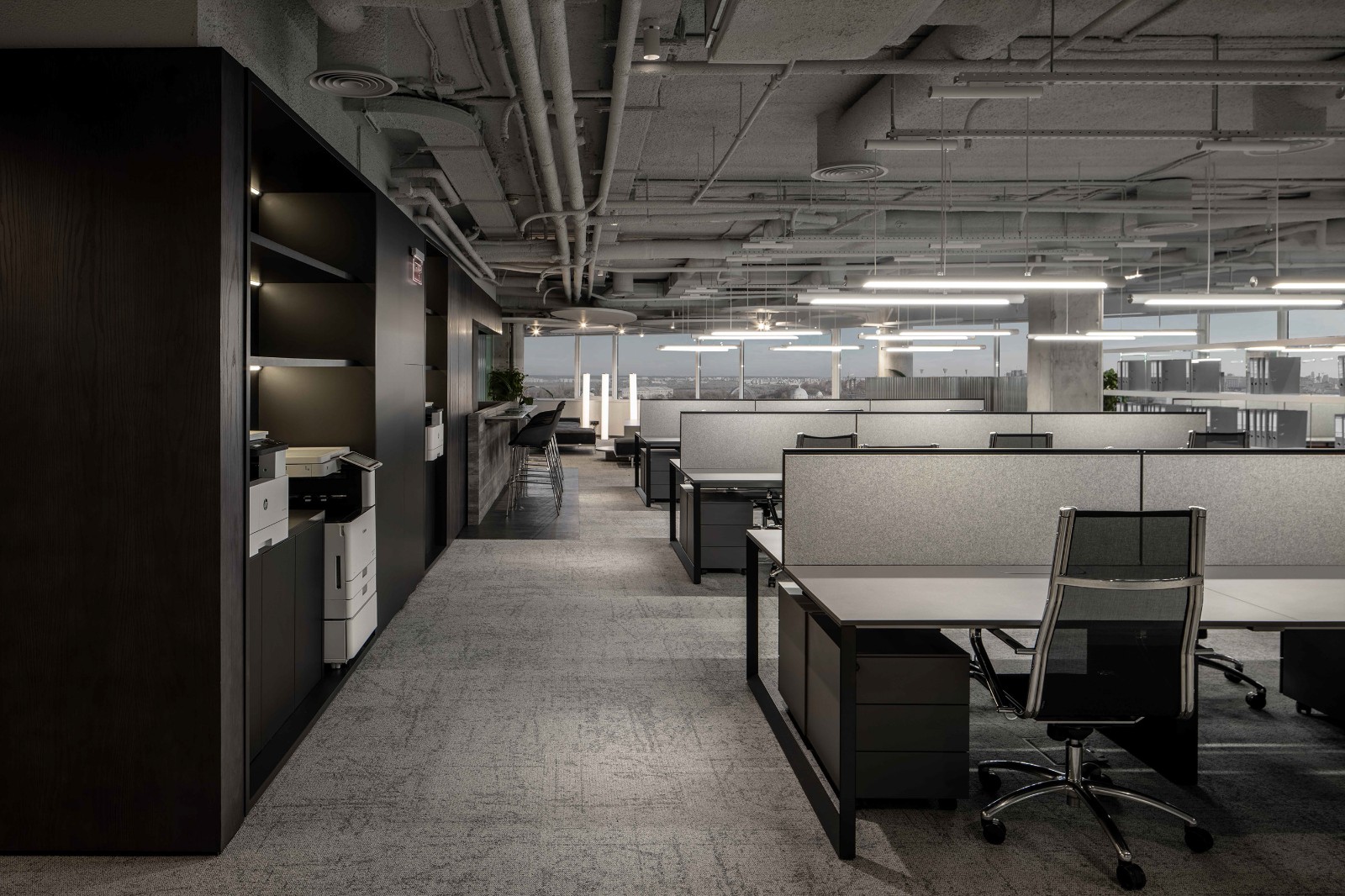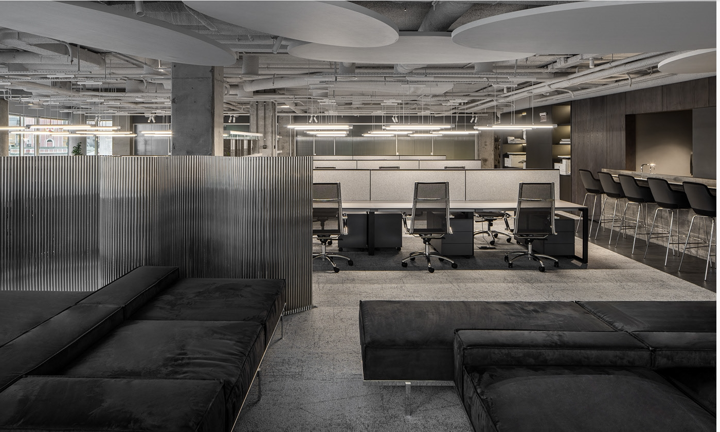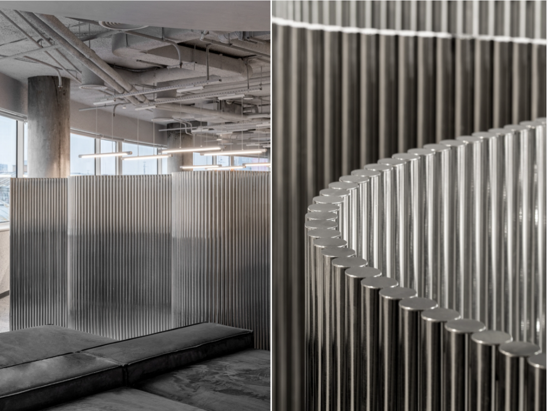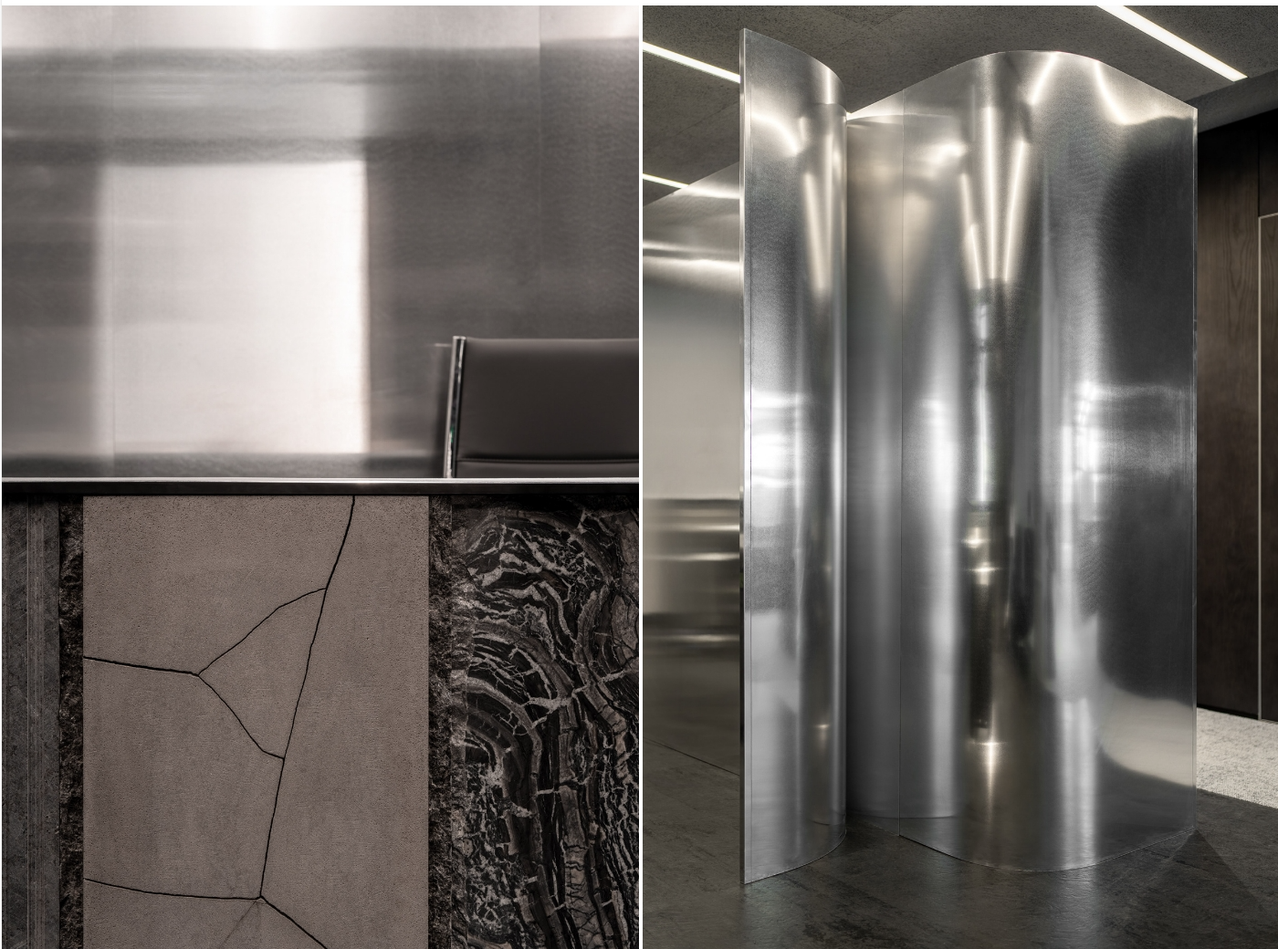 在分析了公司以及團隊的平均年齡(40 歲以上)和他們的需求之后,我們決定專注于簡單和極簡主義。我們的團隊設(shè)計了一個連貫的單色空間,沒有多余的裝飾和視覺噪音,并采用拋光金屬結(jié)構(gòu)和其他獨特元素加以增強。材料以其真實狀態(tài)實施:混凝土——堅固且有紋理,金屬——粗糙和裸露,木材——始終是真實的,從不模仿。