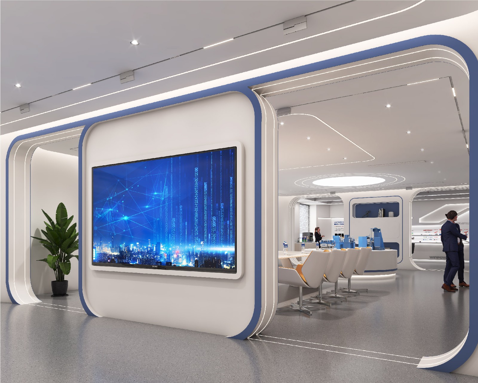 在這一項(xiàng)目中我們希望打破常態(tài)化辦公空間的格局,創(chuàng)造了一種未來式的整體性開放格局,讓多個(gè)維度的空間可以在此交互,讓人可以充分參與到對空間的感知中。我們設(shè)想了一種以“感知"和"探索”為核心的空間系統(tǒng),從尺度感知、行為感知、色彩感知、序列感知和多維感知為核心的一個(gè)具有多元探索的全新辦公模式。