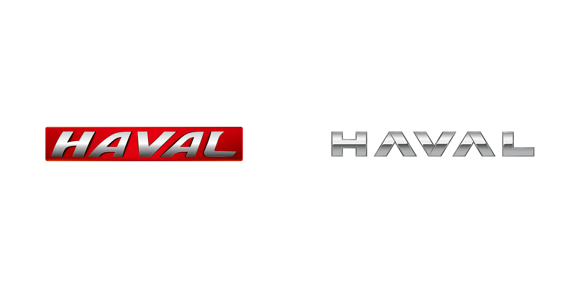哈弗現(xiàn)用的紅底銀色字標(biāo)「HAVAL」啟用于2013年,此次升級同樣以「HAVAL」字母設(shè)計為核心,不過去掉了用了九年多的紅色背景框,把「HAVAL」五個字母「扶正」了。
