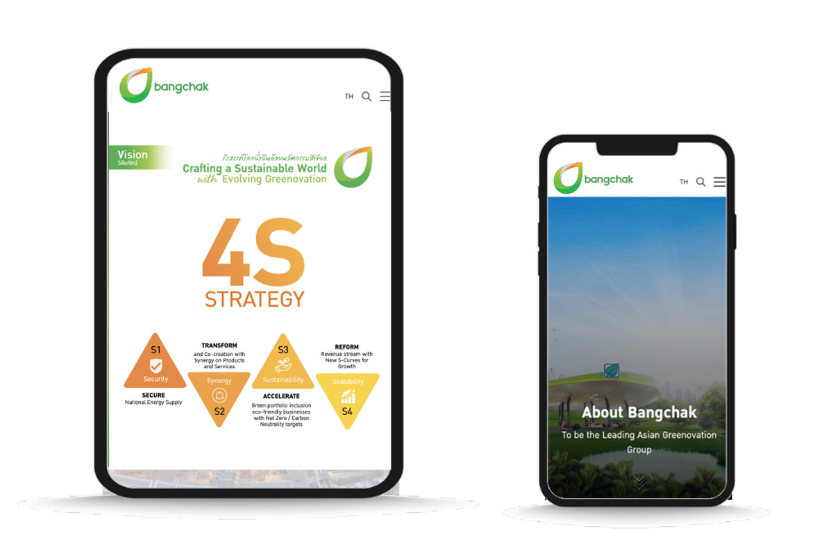 新的企業(yè)LOGO基于原來的藍(lán)色葉子圖表升級,將代表石油的油滴與莫比烏斯環(huán)相結(jié)合,誕生了一個綠色、灰色和橙色漸變的全新符號。新LOGO象征 Bangchak 集團為通往未來的永恒創(chuàng)新能量,反映了打造可持續(xù)發(fā)展的創(chuàng)綠世界的愿景,致力于在平衡能源安全的同時加速可持續(xù)能源轉(zhuǎn)型。