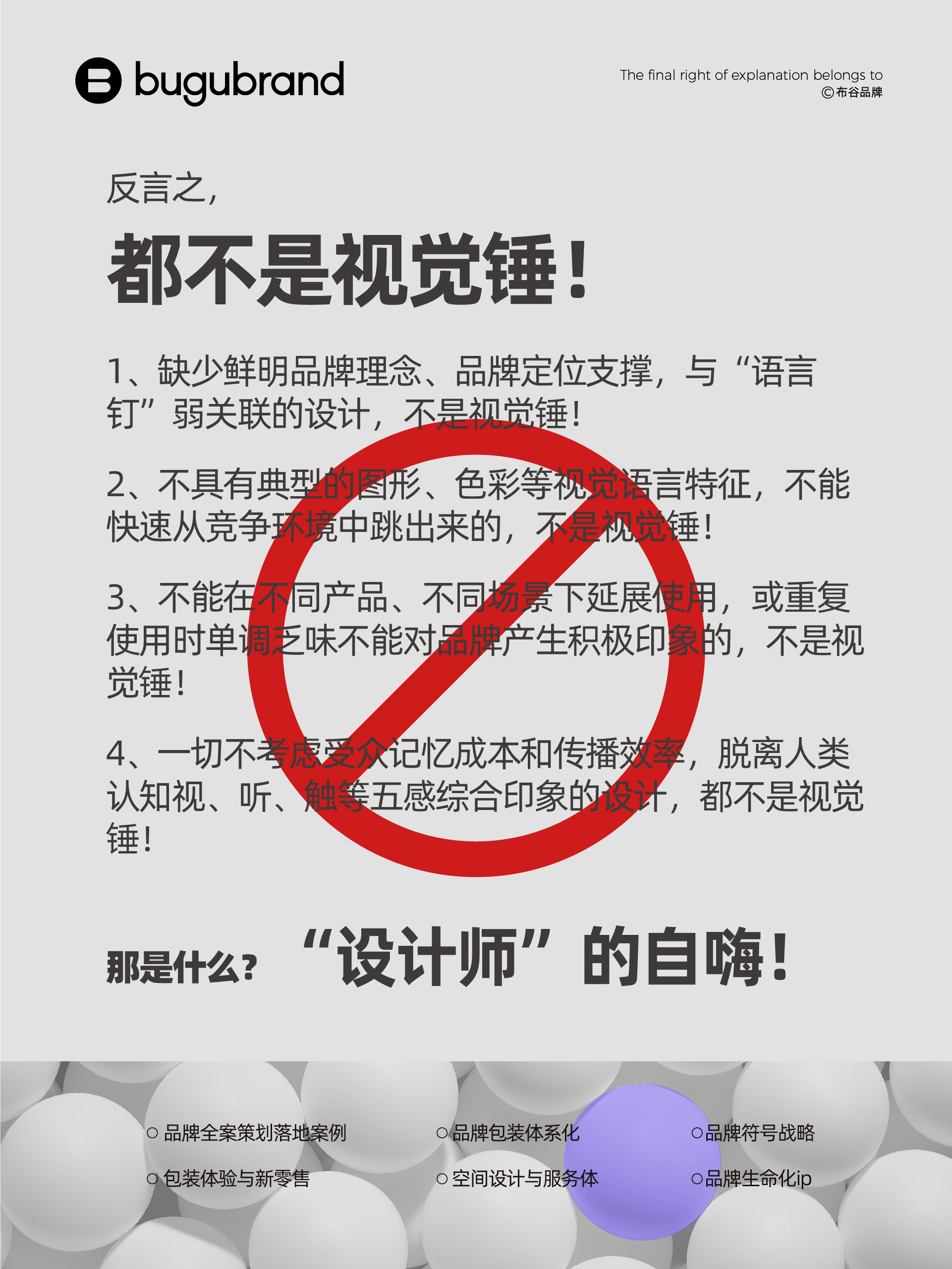今天要和大家講一講什么才是視覺錘!在當下,營銷環(huán)境復雜且多變,品牌想要出圈越來越難,于是“視覺錘”“超級符號”等專業(yè)的概念被頻繁提及,變成了時髦的營銷話術(shù)。越來越多的設計從業(yè)者和品牌方希望通過這些有力的創(chuàng)新工具實現(xiàn)超車。如果你不了解這些時髦的專業(yè)名詞,可能變成誤人誤己的煙霧彈。視覺錘包括平面視覺識別系統(tǒng),平面廣告的畫面,產(chǎn)品外觀的造型,影視視覺識別系統(tǒng)等所有非語言的視覺信息。
