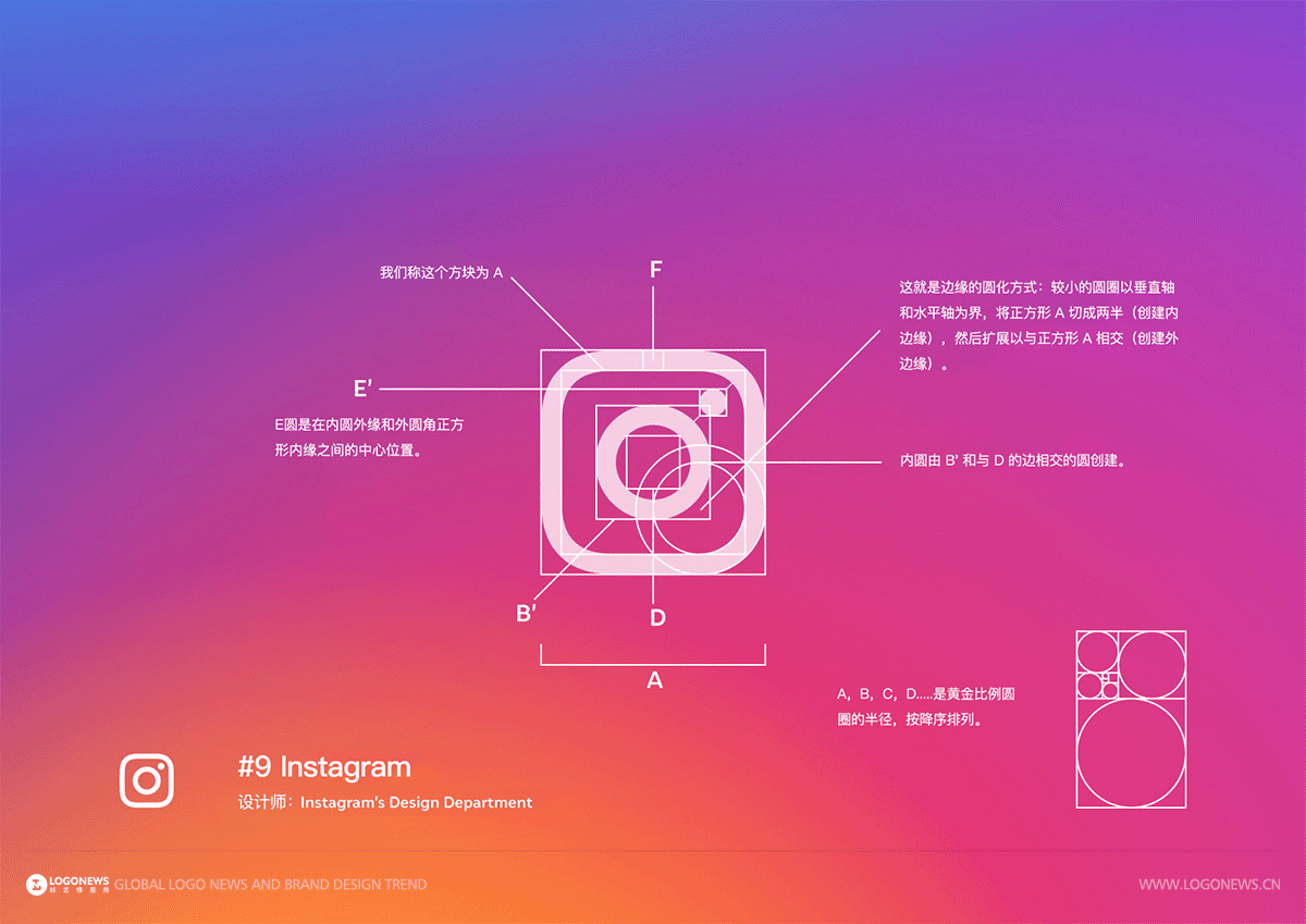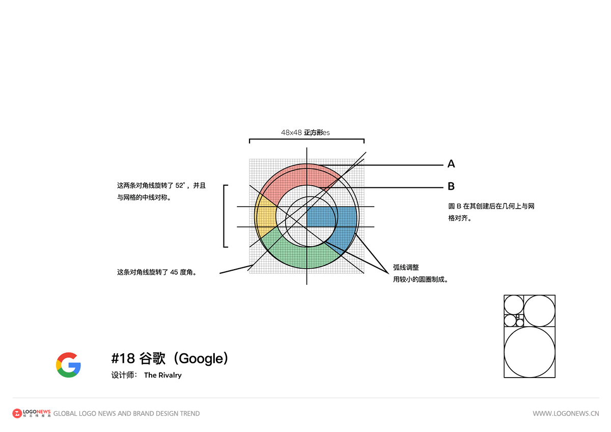 從事平面設(shè)計(jì)工作的人都知道,在90%的情況下,本文中展示的20個LOGO基于數(shù)學(xué)(如斐波那契數(shù)列和黃金分割率)所繪制的網(wǎng)格系統(tǒng)并非一生來就具有,而是后期添加的。不可否認(rèn)的是,學(xué)好數(shù)學(xué),可以讓你的LOGO看上去更加嚴(yán)謹(jǐn),達(dá)到主觀感知的美。