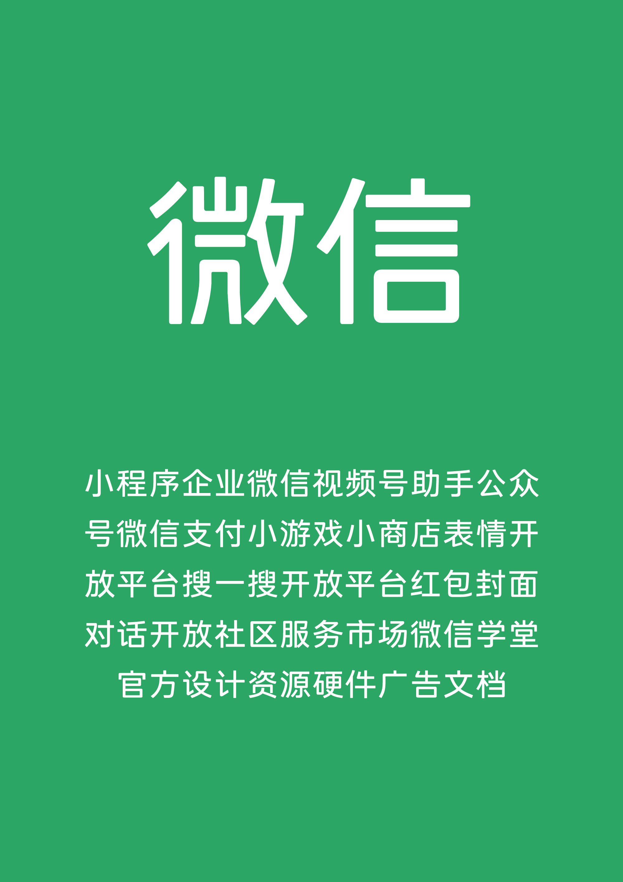 本文展示的圖片僅供參考,標(biāo)準(zhǔn)的應(yīng)用規(guī)范請(qǐng)參閱最新版的微信品牌設(shè)計(jì)指引。https://wechat.design