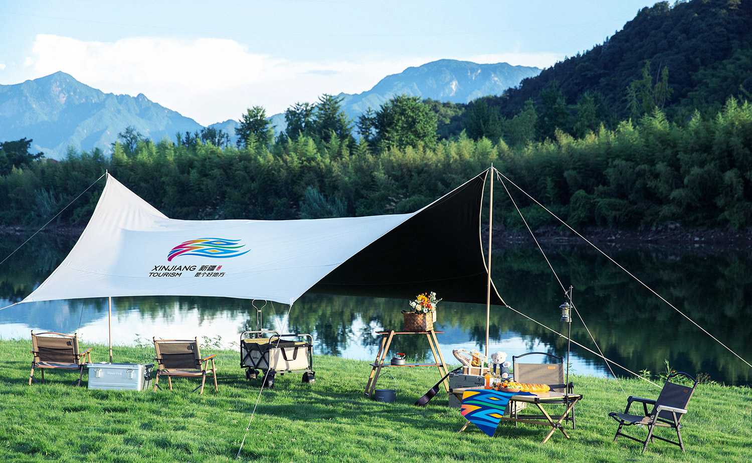 新的品牌色由藍(lán)綠紅黃四色構(gòu)成。其中藍(lán)色代表天空,綠色代表自然,象征新疆旅游所倡導(dǎo)的綠色、環(huán)保、和諧、文明發(fā)展的主旨和理念。紅色與黃色分別代表新疆的熱情和金色的陽光,象征著新疆旅游蓬勃發(fā)展的朝氣和生命力。